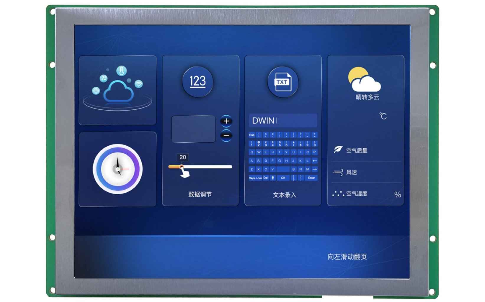 DWIN IPS-TFT-LCD 8.0 дюйма, разрешение 1024*768 пикселей, 16.7М цветов, широкий угол обзора, поддержка связи RS232 и RS485, высокая яркость WTC/WTR/WN: 650/650/700 nit, с конформным покрытием, медицинского класса. Основан на T5L2, работает под управлением системы DGUS II